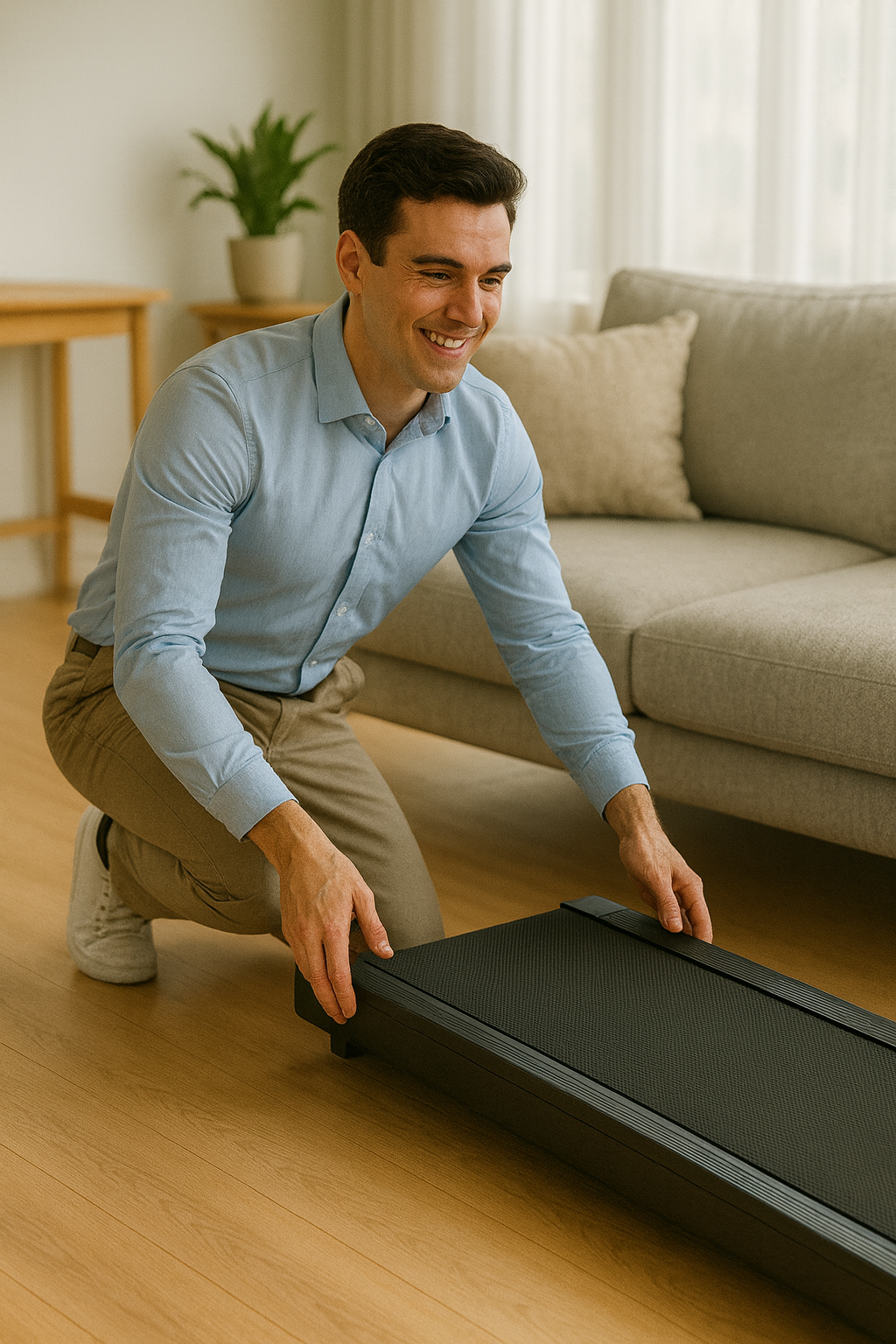 90% of the space is saved with our super compact WalkingPad. Easy way to get some exercise at any time in your home or apartment or office. No assembly required, easy to move.
